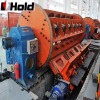 Stranding machine with side bottom loading This machine(with lumped loading device) is adopted to produce compact conductor of long bare aluminum wire, copper wires and ACSR.It is also used to produce sector compressed stranding conductor and round compressed drawing conductor.The main technical characteristics of the machine is that its bobbins are evenly located circularly (four equal degree dividing) around the cage.It is easy to load and unload due to lumped loading device, the position-setting is both correct and reliable,the rigidity and strength of the machine is high, the general performance of the machine is good. Its rotating inertia is small and running speed is very high.The machine is driven by 36 variable steps drive gear-box, with dual active, dual hauling capstan, its haul force is so strong ,the wire distributing collar adopt natural wire distribution for preventing abrasion damage of wire cores when stranding. Wire pay-off tension is controlled pneumatically to guarantee constant tension in full loaded bobbin or empty bobbin. There is a special automatic emergency stop device in case of wire break. The device can control directly every pay-off bobbin in the cage.When wire-broken, the entire machine will automatically stop at once.The machine is suitable for long length,big across-area XLPE cable production .